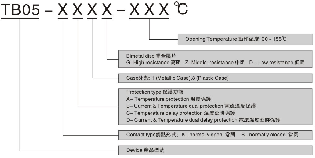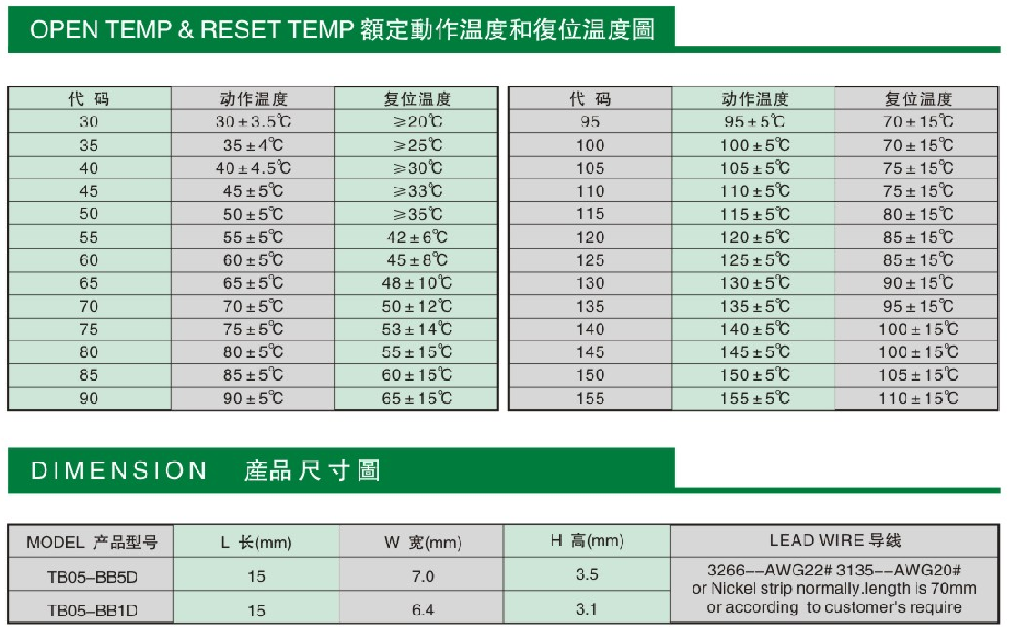 东莞市爱多电子有限公司销售TB05系列各规格温控开关,具体规格如下: