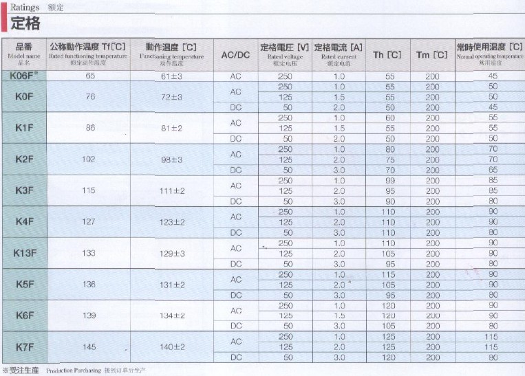 1)K-F Series£¬AC250V 1A/AC125V 1.5A-2A£¬the specification£º