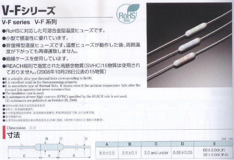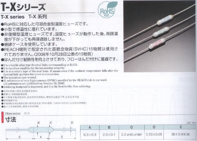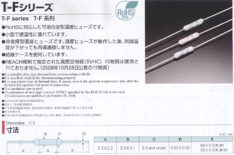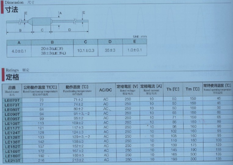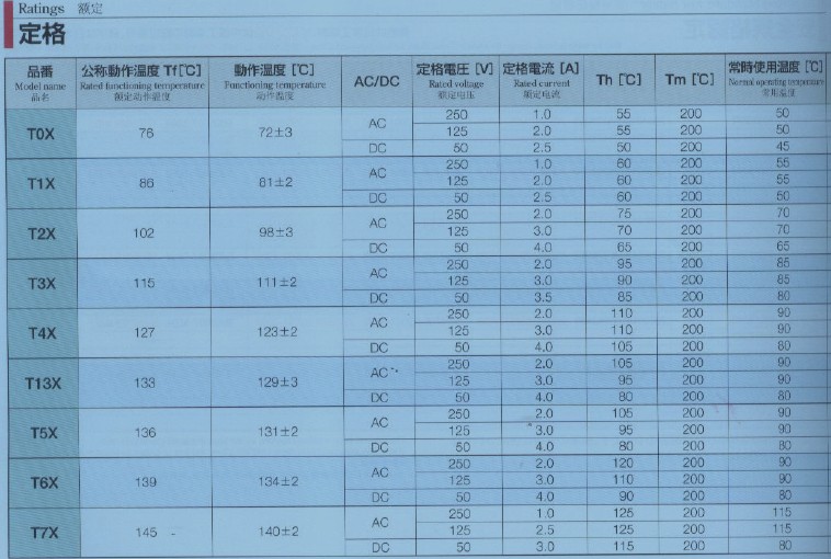 2)T-F Series£¬AC250V 1A/AC125V 2.0-3.0A,the specification as below£º