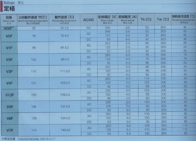 3)V-F Series£¬AC250V 3A/AC125V 3.5A-4A,the specification as below£º