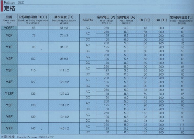 4)Y-F Series£¬AC250V 4.0-5.0A,AC125V 5.5-6.0A.the specification as below£º