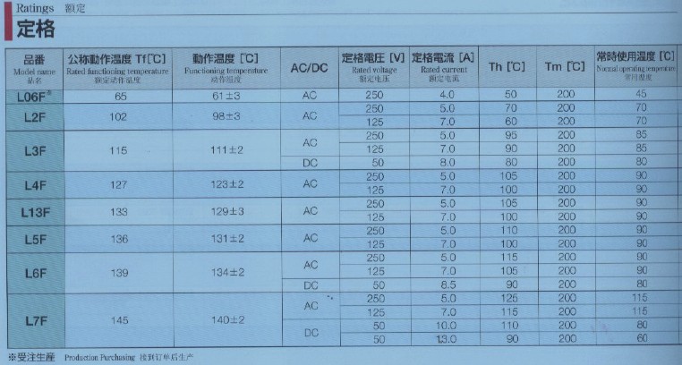 5£©L-F Series£¬AC250V 4.0-5.0A/AC125V 7.0A,the specification as below£º