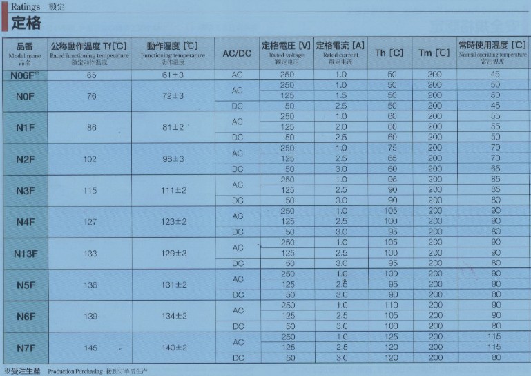 7£©N-F Series£¬AC250V 1A/AC125V 1.5A-2.5A£¬the specification as below£º