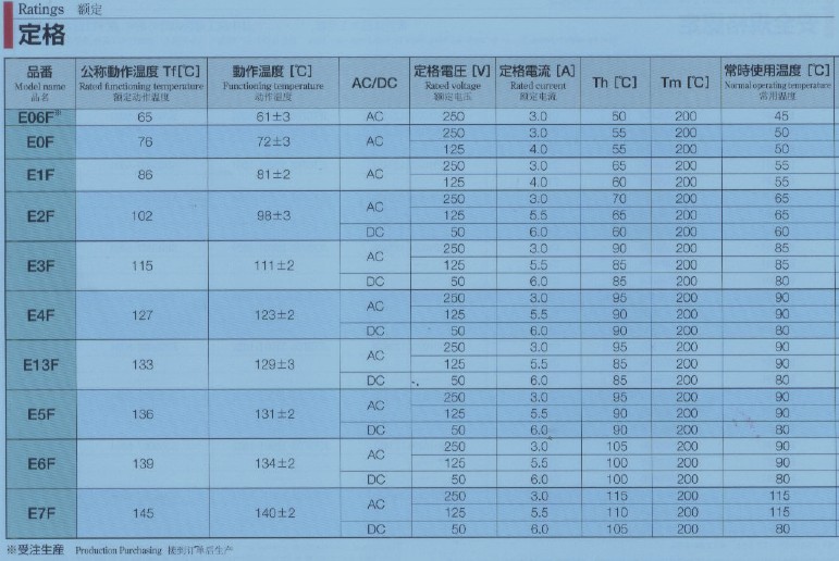 9£©E-F Series£¬AC250V 3.0A/AC125V 4.0A-5.5A;the specification as below£º