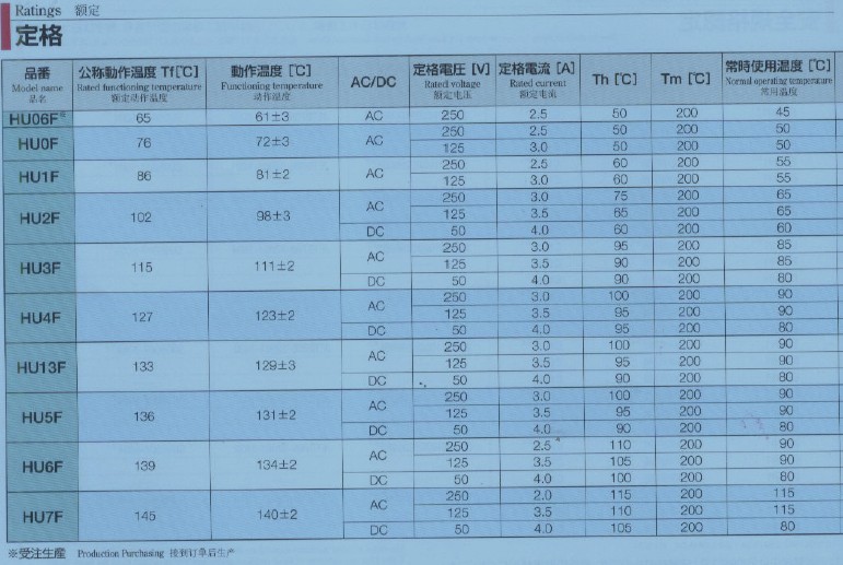 10£©HU-F Series£¬AC250V 2.0A-3.0A/AC125V 3.0-3.5A;the specification as below£º