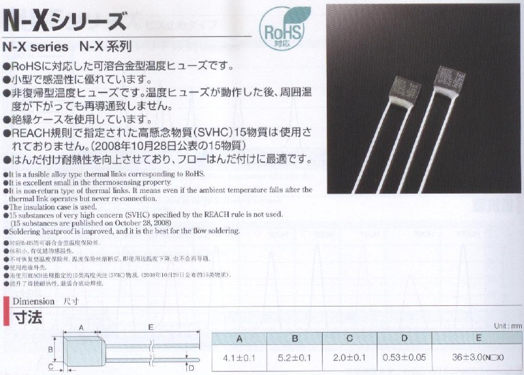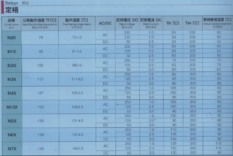 11£©N-X Series£¬AC250V 1.0A/AC125V 1.5A-2.5A;the specification as below£º