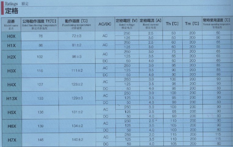 8£©H-F Series£¬AC250V 2.0A-3.0A/AC125V 3.0A-3.5A;the specification as below£º