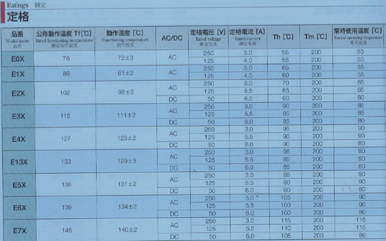 13£©E-X Series£¬AC250V 3.0A/AC125V 4.0A-5.5A;the specification as below£º