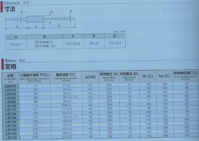 16£©LE-T Series£¬AC250V 10A;the specification as below£º